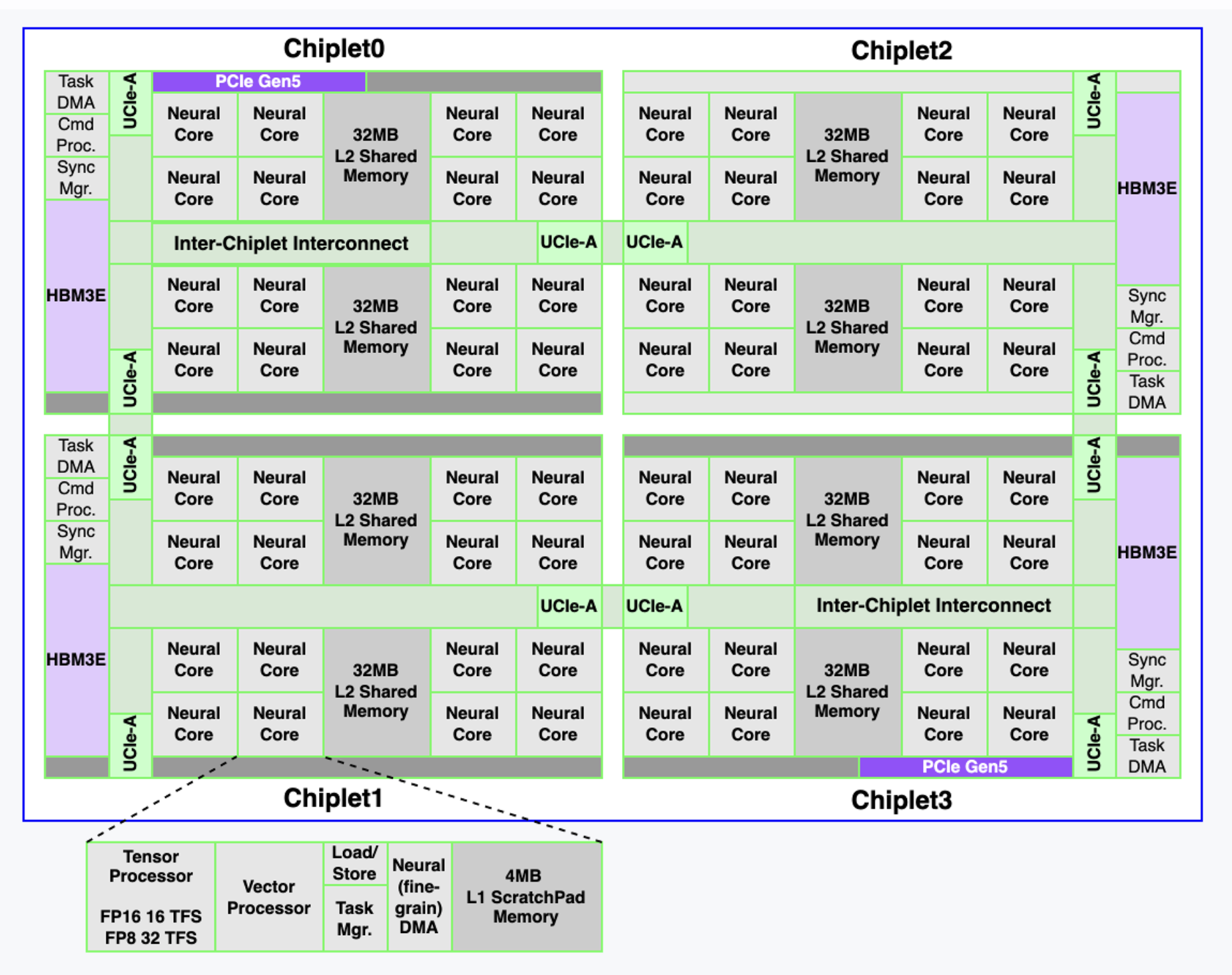 ちなみに同社の最新AI推論チップ「REBEL-Quad」は、UCIe-Advancedを採用したチップレット・アーキテクチャのArmベース・チップで、144GBのHBM3Eメモリを搭載し4.8TB/sの広帯域幅を実現。製造はSamsungファウンドリの4nmプロセス。主力の開発ツールはSynopsys。Rebellionsによると「REBEL-Quad」の推論パフォーマンスは、NVIDIA H200と比較して約1.6倍、電力効率は約3.2倍、消費電力は半分程度ということだ。
