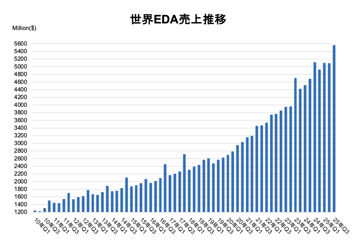 2025年Q3、世界EDA市場は前年比8.8%増の55億6,640万ドルで最高記録を更新