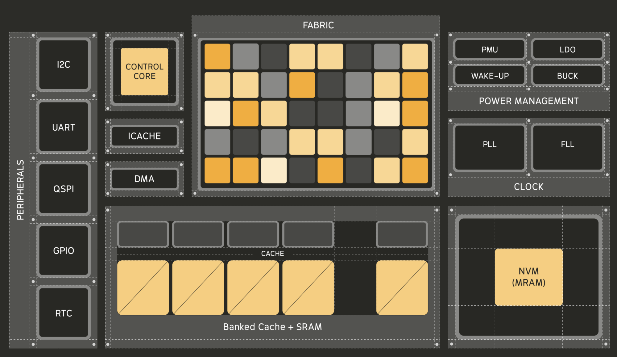 ・チップ上に「Fabric」と呼ばれる小さな計算タイルを多数配置する