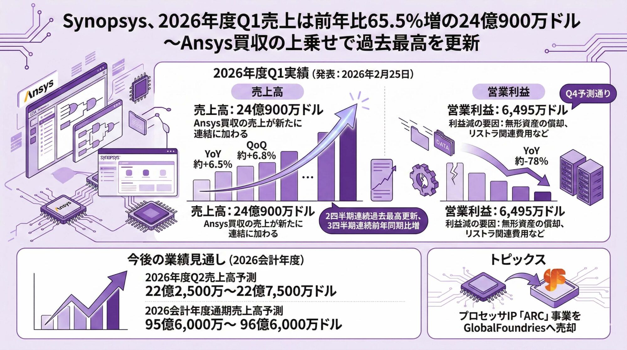 Synopsys、2026年度Q1売上は前年比65.5%増の24億900万ドル〜Ansys買収の上乗せで過去最高を更新