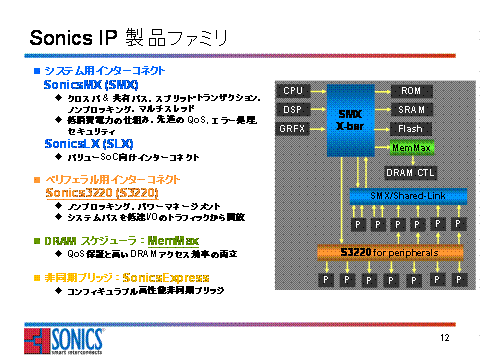 ソニックスは,システムLSI(SoC)のオンチップインターコネクトIPを提供するIPプロバイダです。ソニックスのインターコネクトIPを搭載したSoCは既に2億5000万個を超える出荷実績を持ち、幅広いアプリケーションで適用されています。